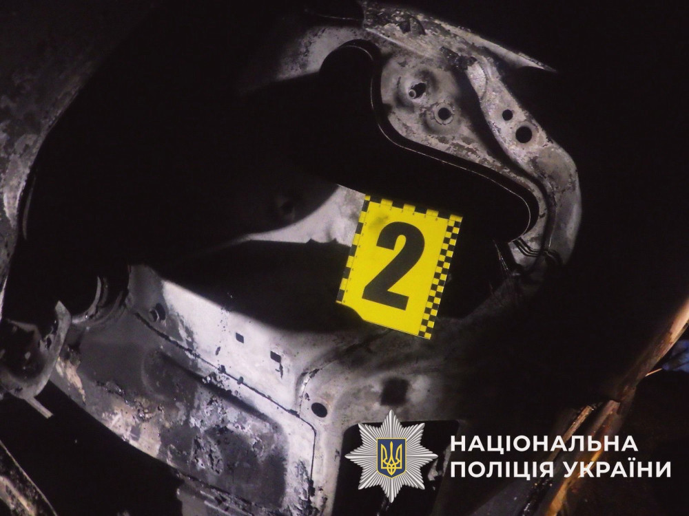 На місці виявилося, що автомобіль марки Toyota підпалили за допомогою пластикової пляшки з легко займистою рідиною, яку підпалили та помістили під автомобіль.