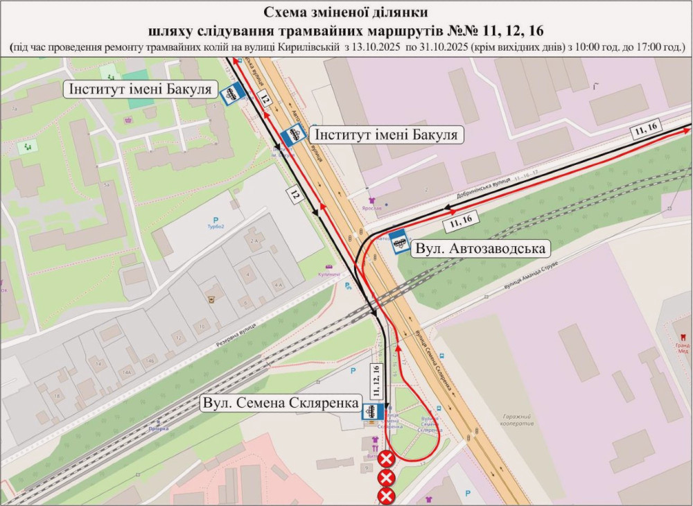 З початку до закінчення ремонтних робіт, щоденно з 10:00 до 17:00 (окрім вихідних) трамваї курсуватимуть: