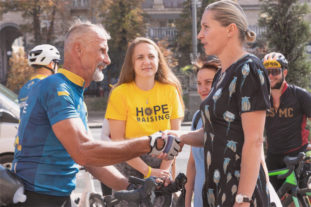 Сьогодні, 11 вересня, у столиці України завершилася велика велосипедна експедиція під назвою «Подорож за надією». Цей проєкт, започаткований Якубом Кепкою, розпочався в Кракові і завершився у Києві. Під час фінішу учасників зустріла Олена Говорова, заступниця голови КМДА.
