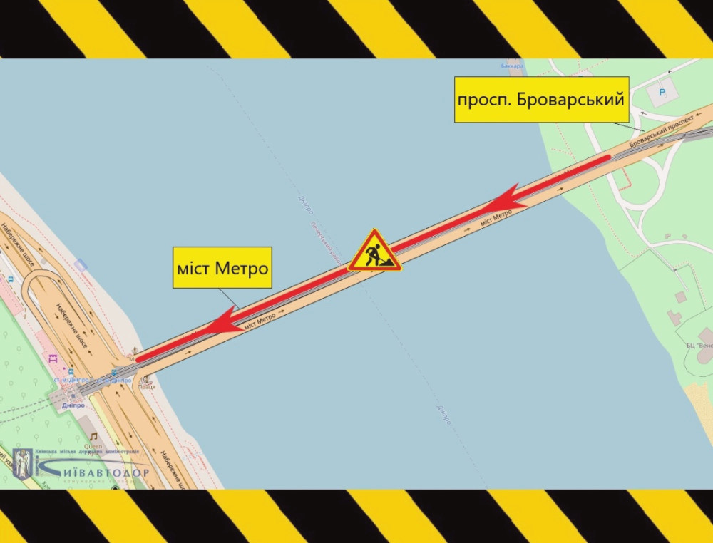 З 18 по 22 липня у столиці України буде частково закрито рух автотранспорту через міст Метро, що з'єднує береги Дніпра.