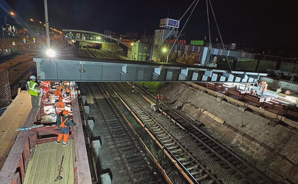 Зараз триває укладання балок між першою та другою опорами над метрополітеном.