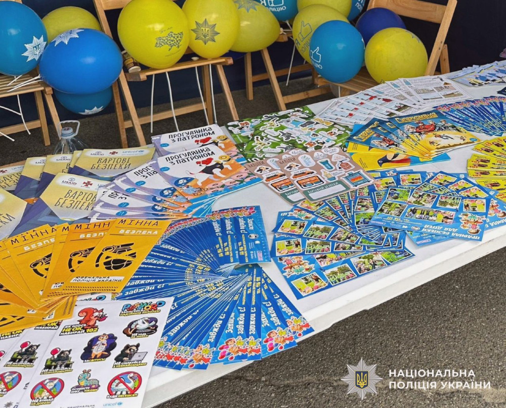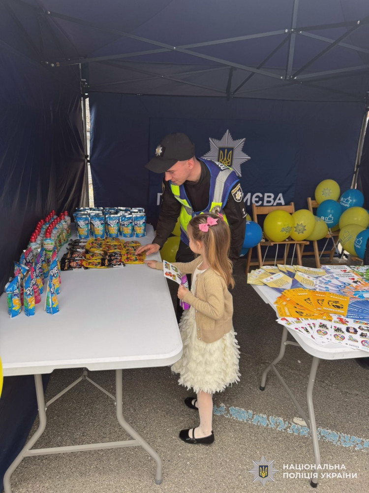 Малеча із задоволенням спілкувалася з поліцейськими, знайомилася з їхнім обладнанням, брала участь у вікторинах, отримувала інформаційні буклети, яскраві наліпки, повітряні кульки та солодощі.