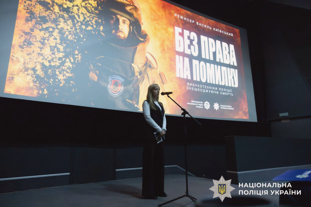 У столиці України відбувся допрем'єрний показ нового документального фільму «Без права на помилку», який розповідає про героїзм і повсякденну працю вибухотехніків Національної поліції.