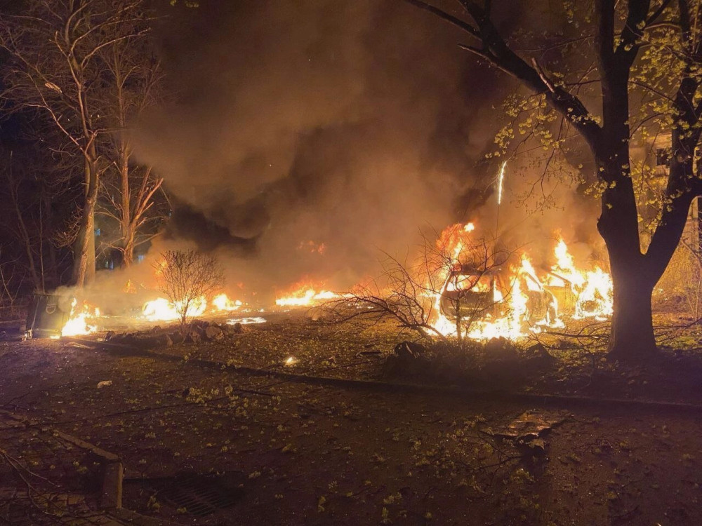 У вечірній час у вівторок, 8 квітня, армія РФ здійснила напад на місто Дніпро за допомогою ударних безпілотників. Внаслідок цього у місті почалася пожежа, про що повідомили Сергій Лисак, голова Дніпропетровської ОВА, та мер Борис Філатов.