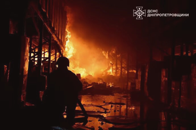 Пряма мова: "Ворог завдав удару по місту, в результаті якого виникла велика пожежа. Є руйнування на об'єкті цивільної інфраструктури. Попередньо, троє постраждалих. Зараз з'ясовуємо всі деталі".