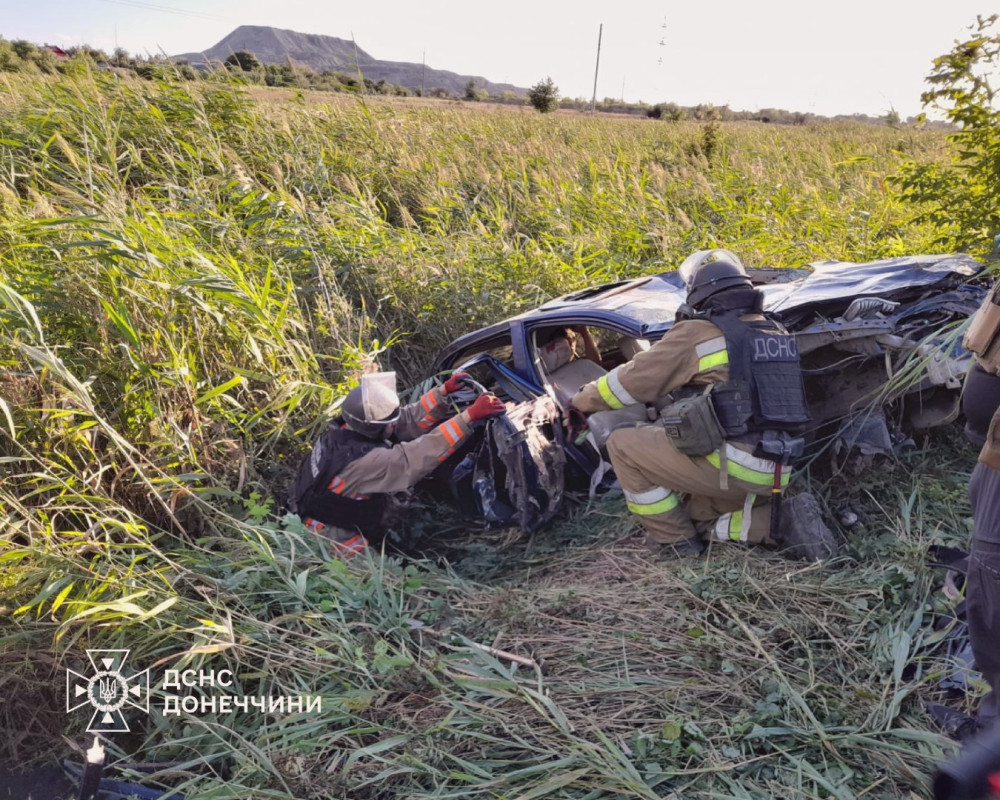 На Донеччині російський дрон атакував легковик, в якому перебували троє осіб. Авто злетіло в кювет. Двоє чоловіків були врятовані поліцією, а третього витягли рятувальники та передали медикам.