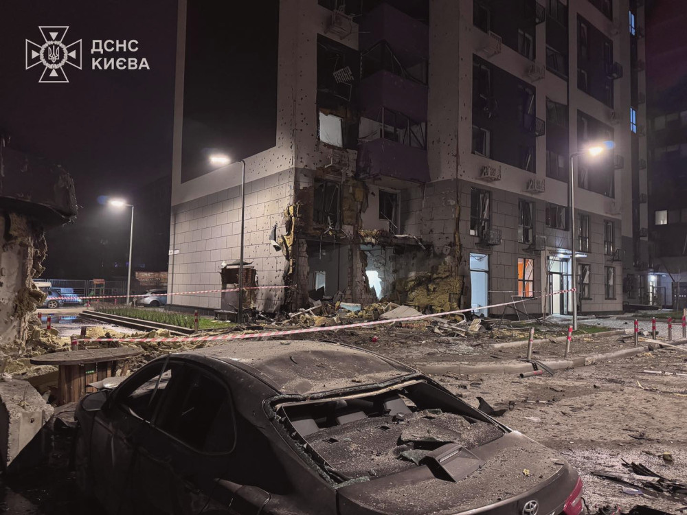 Дніпровський район: влучання у 10-поверховий будинок спричинило руйнування 6-7 поверхів. Пожежу ліквідовано, з 7 поверху врятовано трьох людей.