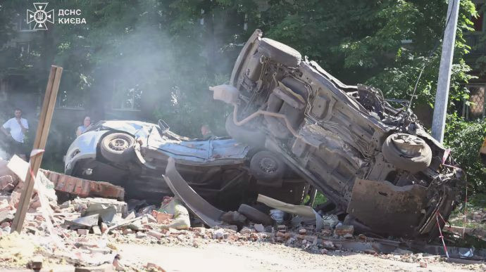 Оновлення про наслідки падіння уламків БпЛА у Києві після російських атак.