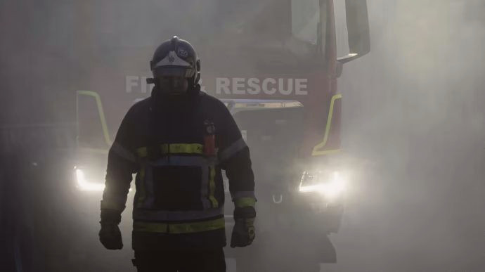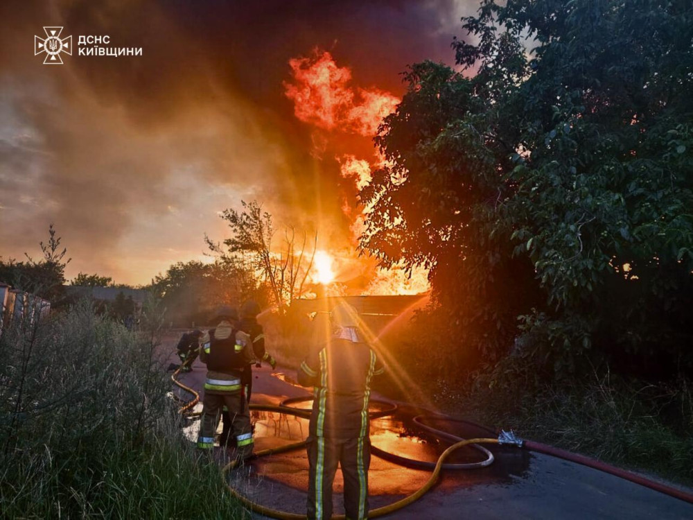 Масштабна пожежа на промисловому підприємстві в Київській області через ворожу атаку. Інформація від ДСНС України.